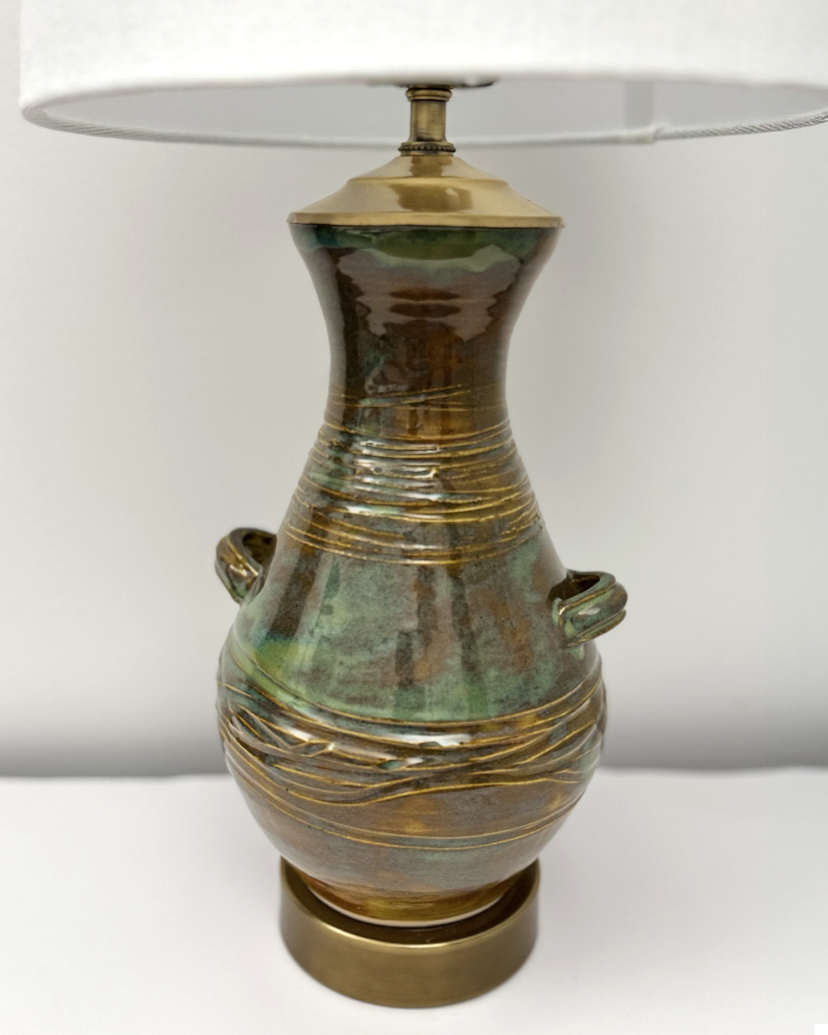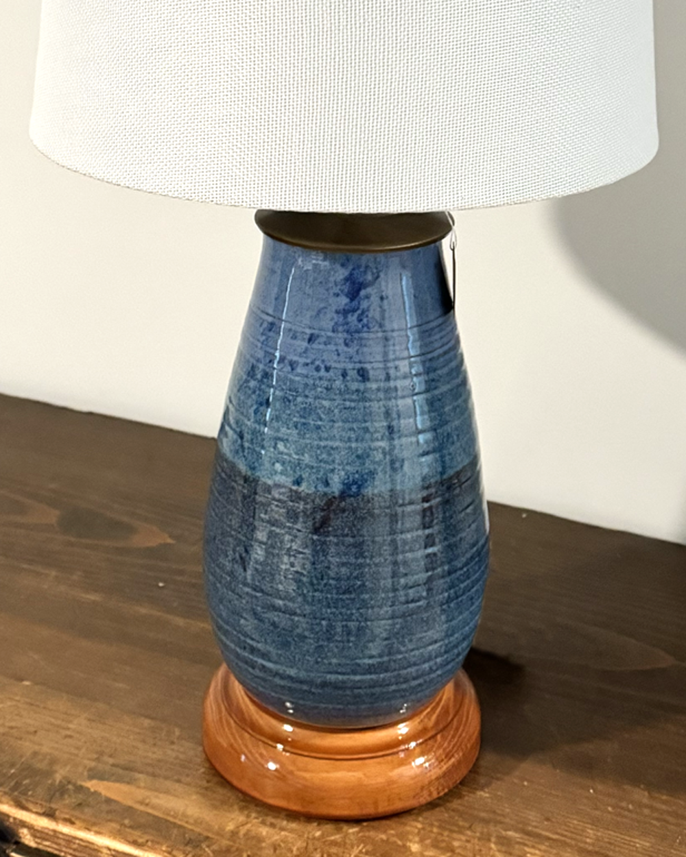 Brackish This handcrafted 22” tall table lamp reminds me of the coastal, brackish waterways of Georgia. UL listed wiring with 6’ cord. $150 plus shipping if desired. Shipped without shade or local delivery with shade.